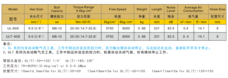 定扭氣動扳手UL-60S/ULT-60S