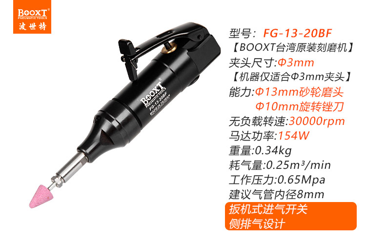 東莞市強勁五金工具有限公司提供臺灣BOOXT波世特品牌氣動工具,氣動模具打磨機FG-13-20BF廠家直銷,首件享特價。咨詢熱線:4008301980