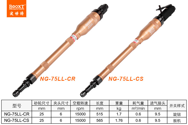 東莞市強勁五金工具有限公司提供臺灣BOOXT波世特品牌氣動工具,加長氣動內磨機NG-75LL-CR廠家直銷,首件享特價。咨詢熱線:4008301980