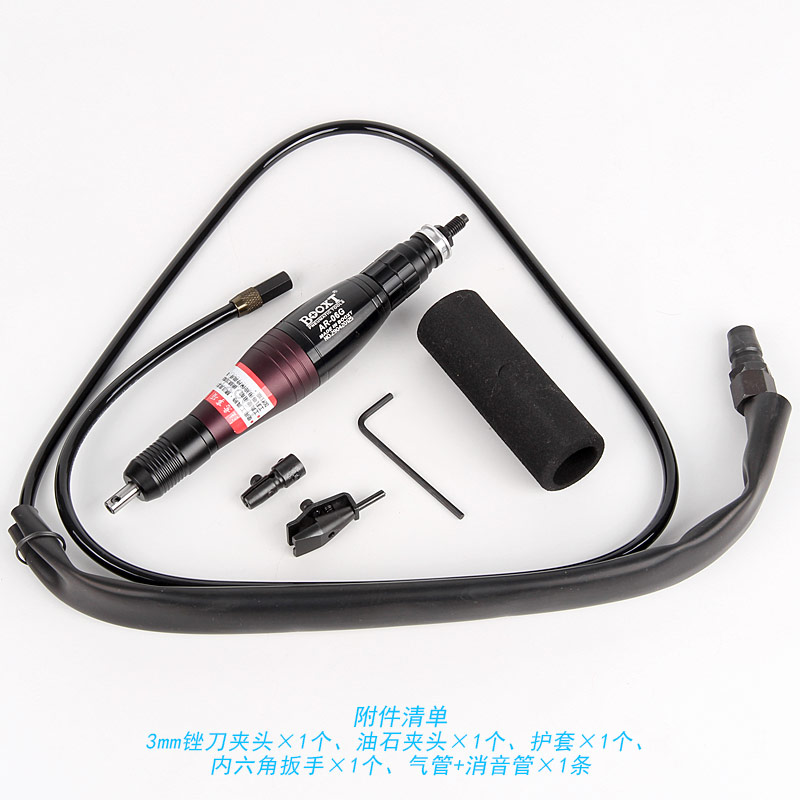 • 產品參數: 夾頭直徑:3mm 前后行程:0.6mm 行程轉數:36500bpm 外形尺寸:30*208mm 耗 氣 量:0.21立方米/分鐘 重 量:0.2kg