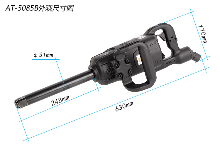 • 產品參數: 螺栓能力:36mm; 方頭尺寸:1"; 5秒 扭力:2700Nm; 空載轉速:5500rpm; 全 長:630mm; 重 量:7.5kg; 使用工作氣壓:0.65Mpa; 推薦使用內徑16mm氣管; 平時使用應多加氣動油保養