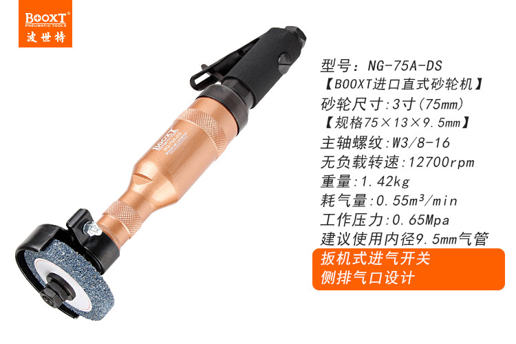 東莞市強勁五金工具有限公司提供臺灣BOOXT波世特品牌氣動工具,直向氣動砂輪機NG-75A-DS廠家直銷,首件享特價。咨詢熱線:4008301980
