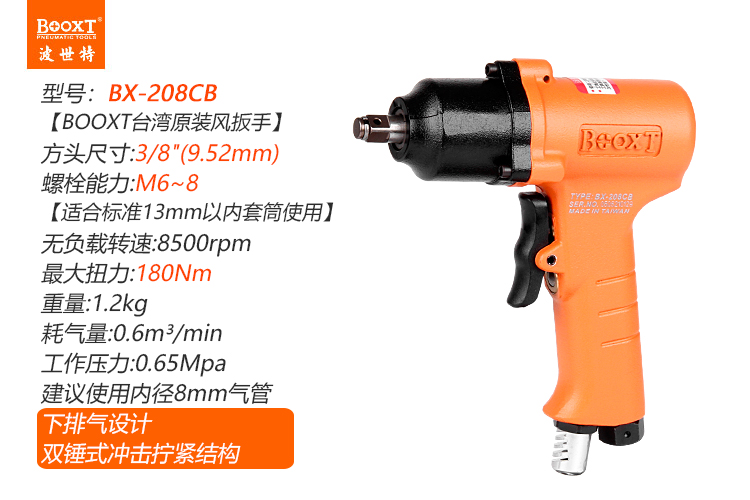 東莞市強勁五金工具有限公司提供臺灣BOOXT波世特品牌氣動工具,小型小風炮BX-208CB廠家直銷,首件享特價。咨詢熱線:4008301980