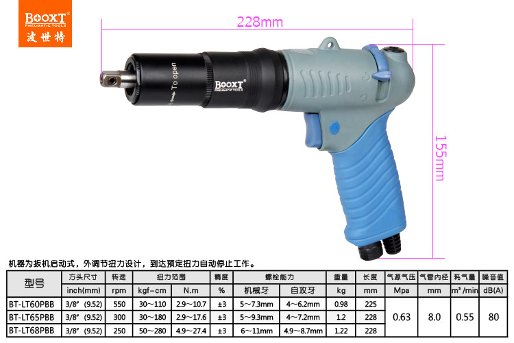 本機為扳機啟動式,外調扭力(帶外殼保護),自動斷氣式。