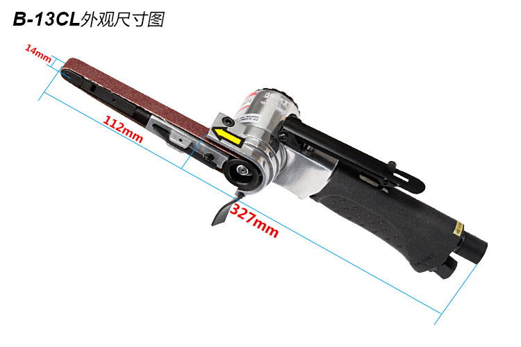 • 產品參數: 砂帶尺寸:13×330mm; 空載轉速:20000rpm; 工具長度:327mm; 工具重量:0.86kg; 耗 氣 量:0.4m3/min; 噪 音 值:84db(A) 使用工作氣壓:0.65Mpa; 推薦使用內徑8mm氣管; 平時使用應多加氣動油保養. 【工業型】