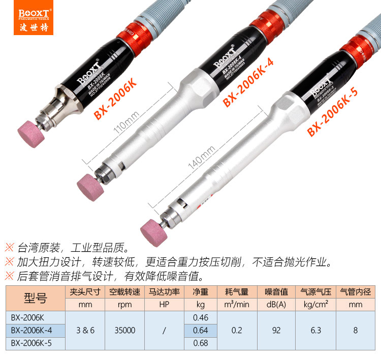 東莞市強勁五金工具有限公司提供臺灣BOOXT波世特品牌氣動工具,大扭力風磨筆BX-2006K廠家直銷,首件享特價。咨詢熱線:4008301980