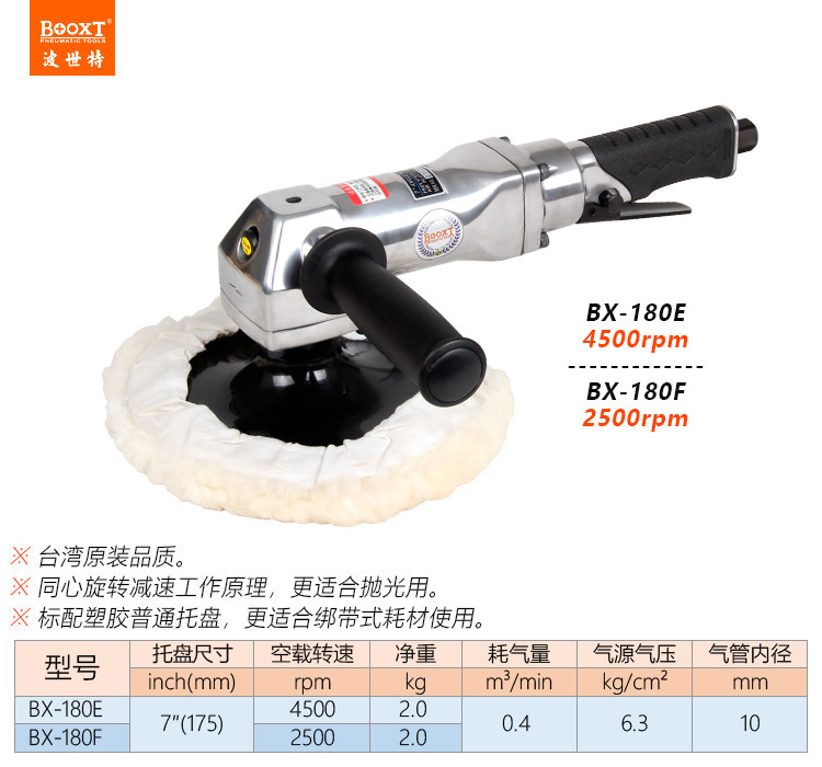 東莞強勁五金工具有限公司提供臺灣BOOXT波世特氣動工具,氣動打蠟拋光機BX-180E廠家直銷,首件享特價。咨詢熱線:4008301980