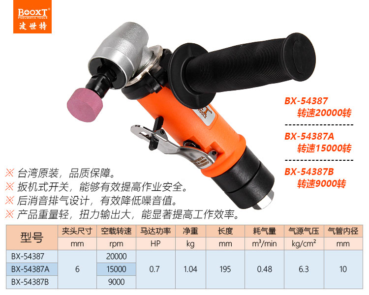 東莞市強勁五金工具有限公司提供臺灣BOOXT波世特品牌氣動工具,彎頭刻磨機BX-54387B廠家直銷,首件享特價。咨詢熱線:4008301980